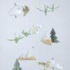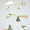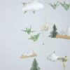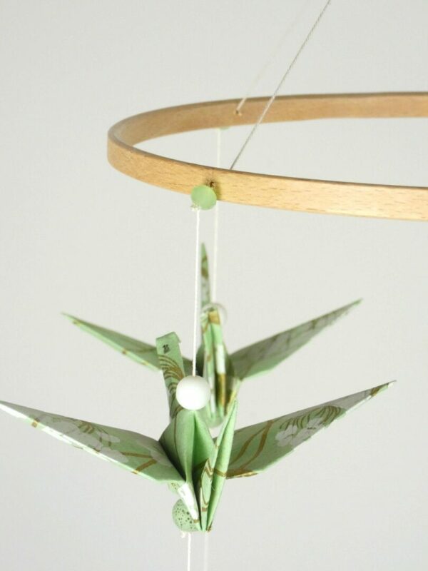 Chaque mobile est unique, sa dimension varie entre 60 et 65cm à partir de l’accroche qui forme une boucle jusqu’à la dernière pièce du mobile.