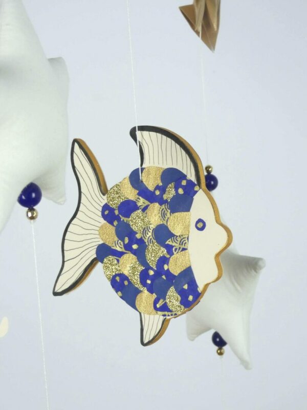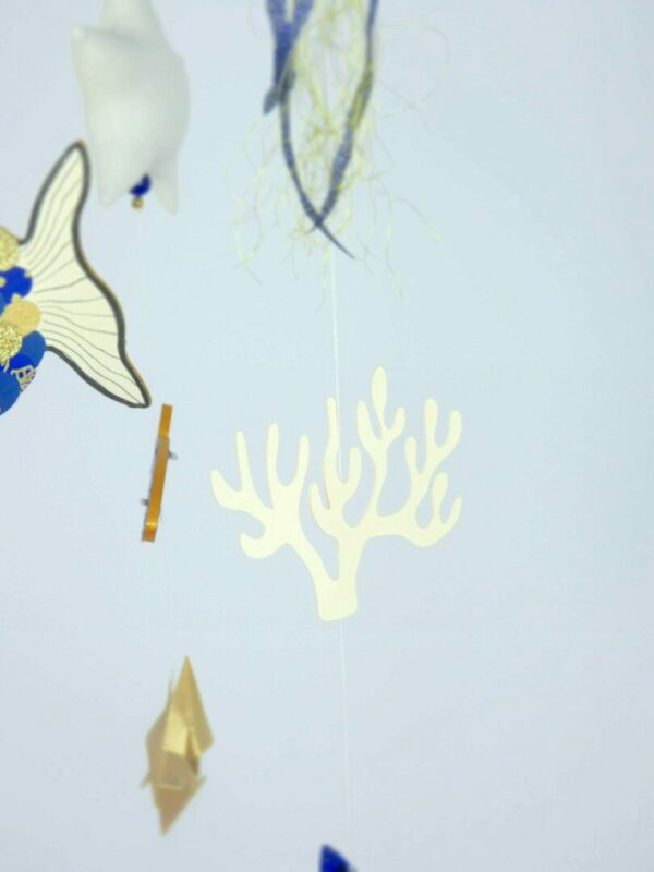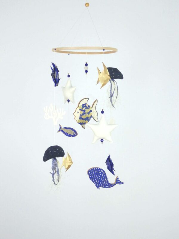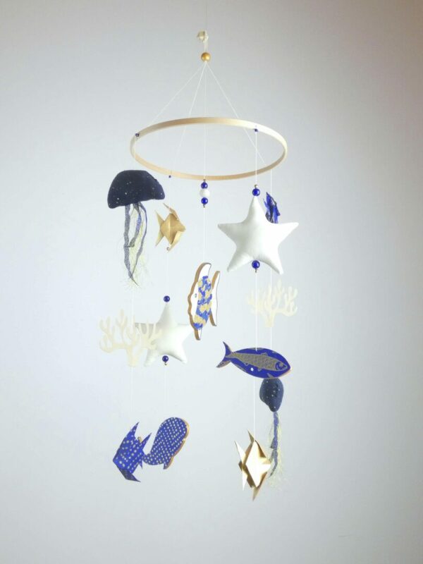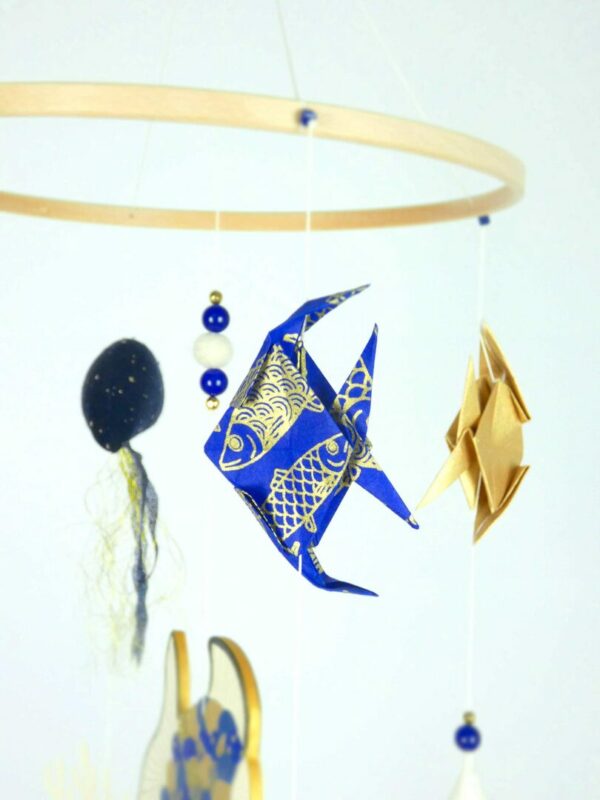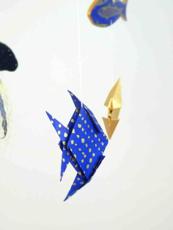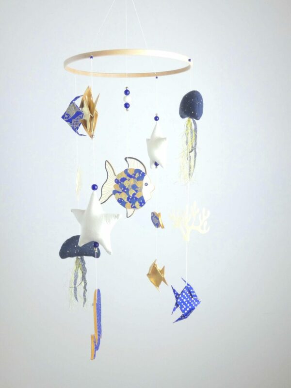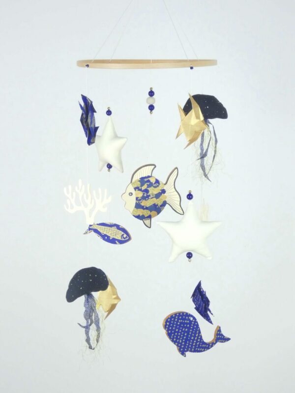Mobile bébé origamis océan poisson et méduses.
